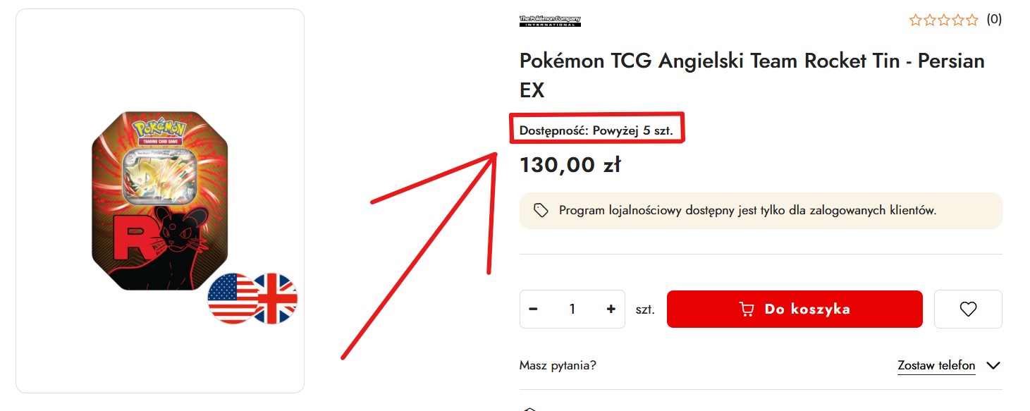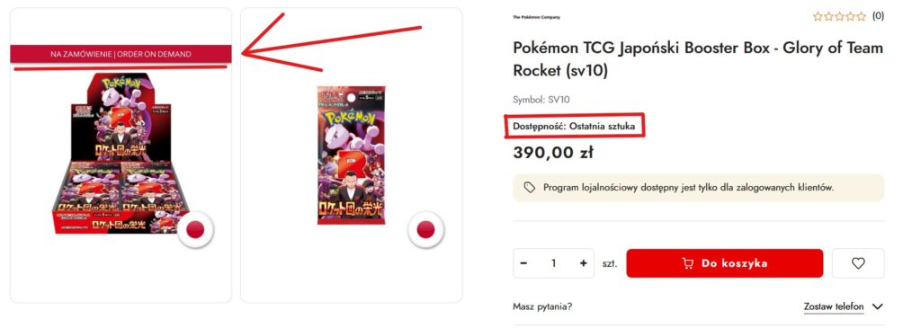 Produkty z czerwonym oznaczeniem „na zamówienie” automatycznie przechodzą w tryb sprowadzania na zamówienie. Takie produkty nadal można dodać do koszyka i zamówić, mimo braku fizycznego stanu magazynowego. W wyjątkowych sytuacjach, dla produktów ciężko dostępnych, bądź bardzo popularnych, konieczne może być skontaktowanie się mailowo z obsługą sklepu. Takiego produktu